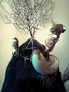 hooked into a 300,000 volt Tesla Coil to shower bolts of artificial